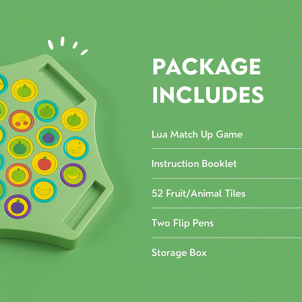 Lua Match Up keeps young minds active with focused, screen-free fun. One session can go on for hours — building memory, attention, and patience with every flip.